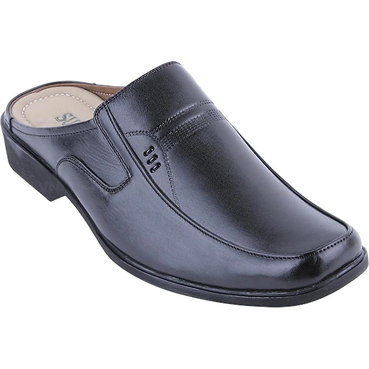 Thiết kế tinh xảo với đường may chắc chắn, kiểu dáng dép xỏ bít mũi tiện lợi, nam tính.