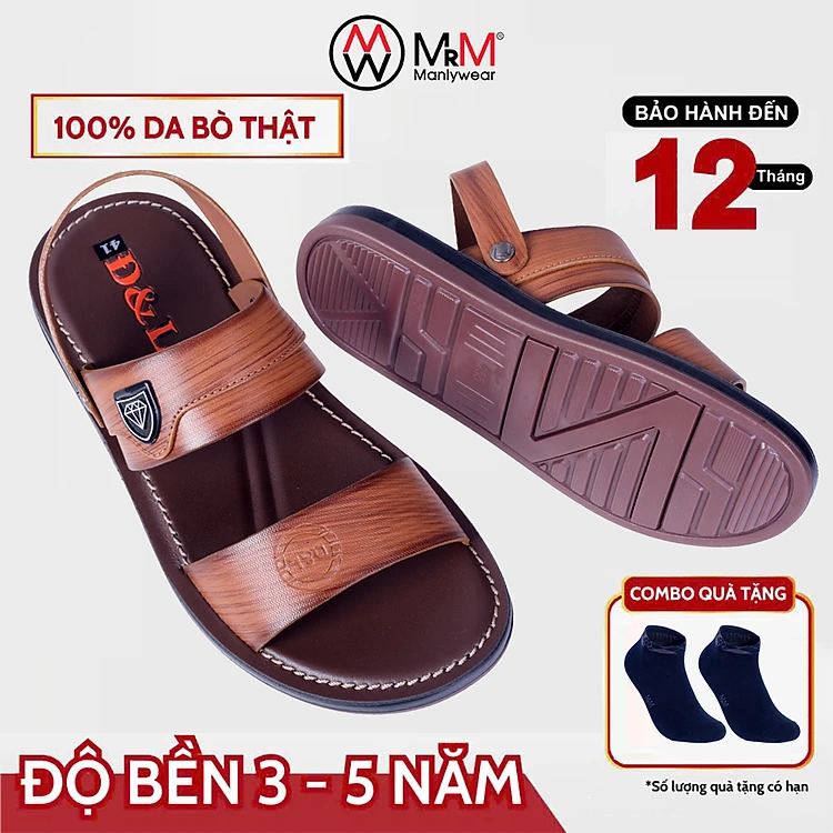 Dép Sandal Nam Da Bò Đế Cao Su Nguyên Khối, Đường May Chắc Chắn, Mềm Mại Êm Chân MRM Manlywear