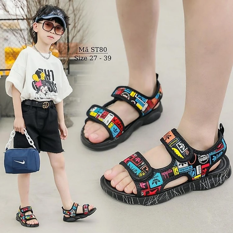 Dép sandal quai ngang cho bé trai 3 - 12 tuổi abibas có quai hậu phù hợp trẻ em học sinh đi học đi biển êm nhẹ mùa hè chống trơn trượt NHÍM SHOP ST80