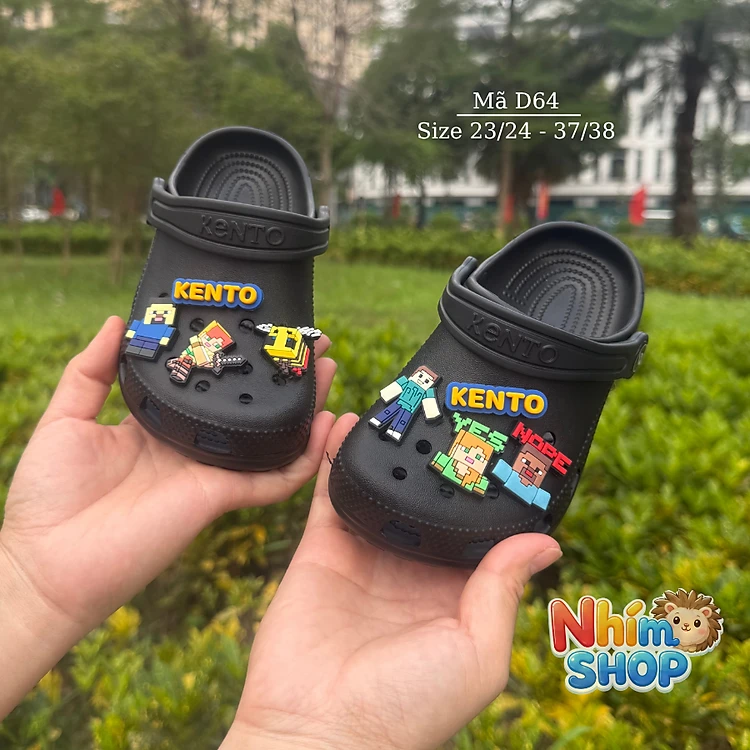 Dép Sục Clog KENTO cho bé trai bé gái 3 - 12 tuổi chống hôi chân, chống trơn, hỗ trợ chống bẹt chân đi học đi chơi NHÍM SHOP D64