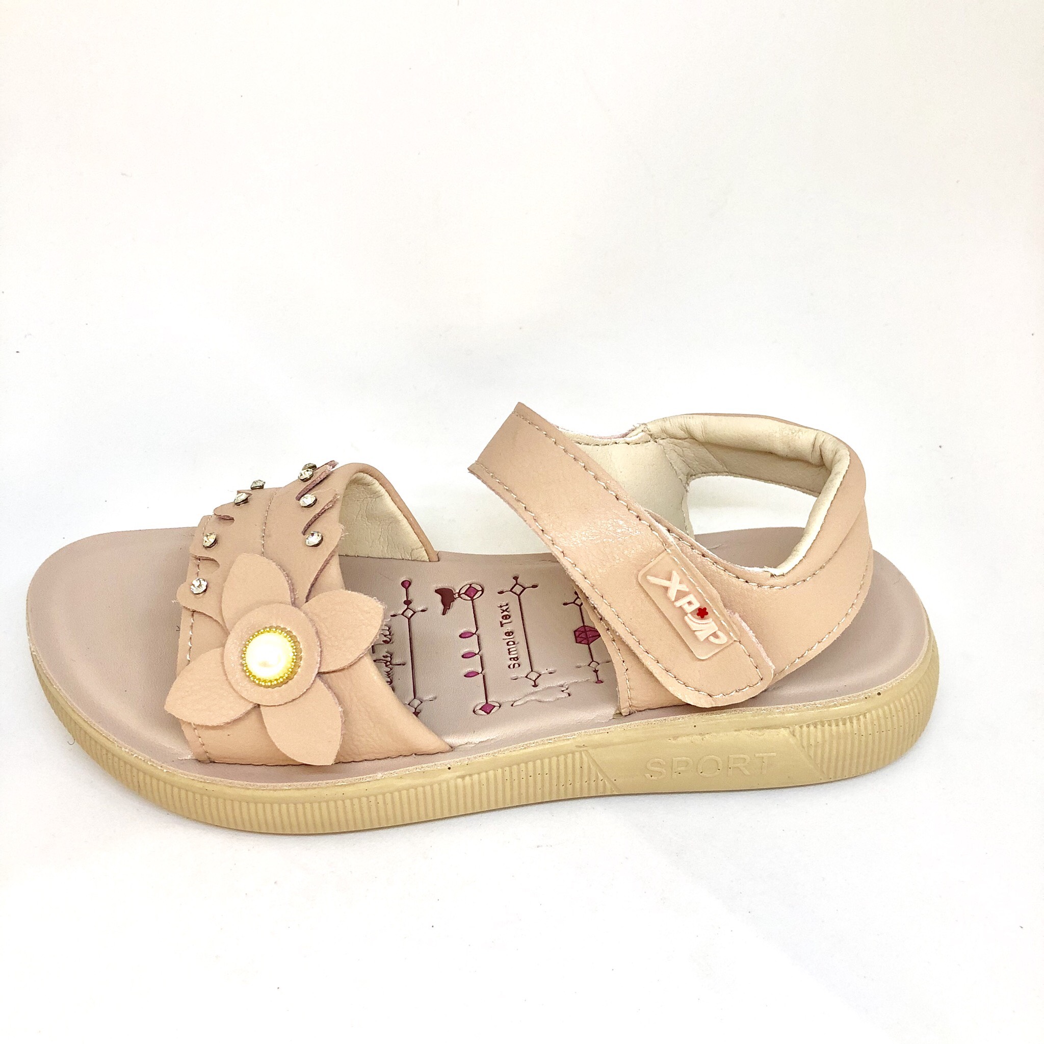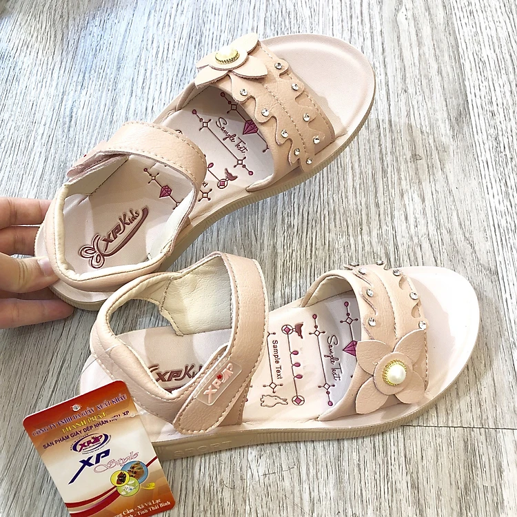 Sandal cho bé gái gắn hoa và đá được làm từ chất liệu da PU, đính hoa chắc chắn. Đặc biệt kiểu quai dán tiện dụng, giúp bé đi lại dễ dàng khi đi chơi hay đi học.