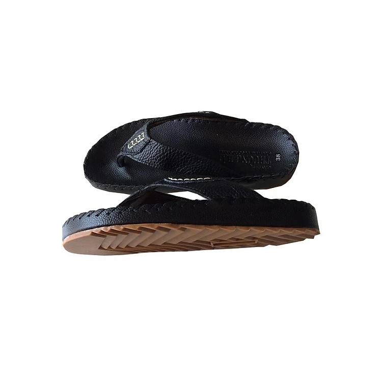 Dép xỏ ngón đen may viên da bò thật mềm mại TH037