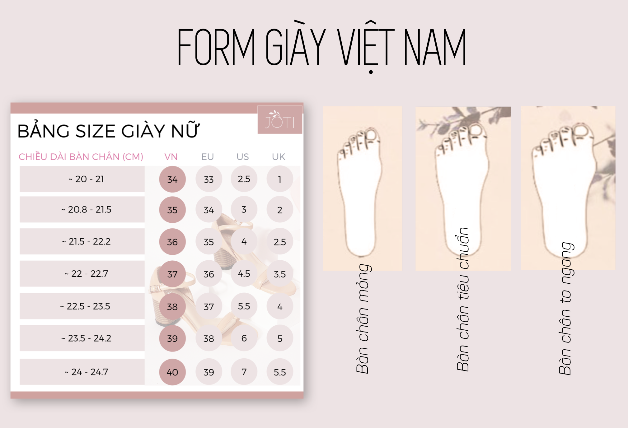 ◦ Tuỳ dáng bàn chân của bạn và kiểu giày, sẽ có sự chênh lệch size đôi chút.
