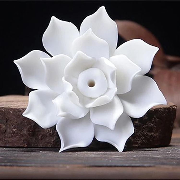 Đĩa cắm nhang hoa sen gốm trắng tiểu bạch