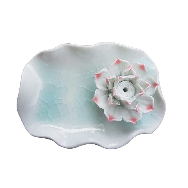 Đĩa đế cắm trầm handmade gắn hoa bằng gốm cao cấp DDT15