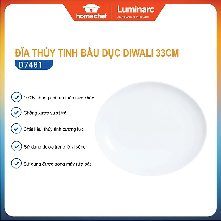 Đĩa (dĩa) thủy tinh bầu dục sâu lòng Luminarc Diwali 33cm N3606 | Hàng chính hãng