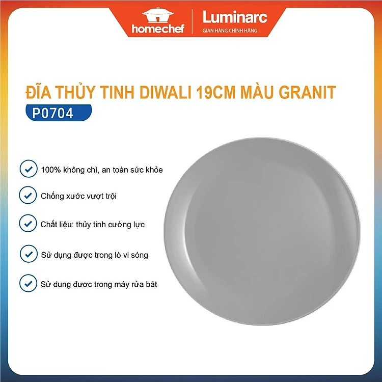 Đĩa (dĩa) thủy tinh nông lòng Luminarc Diwali Granit 19cm P0704 | Hàng chính hãng