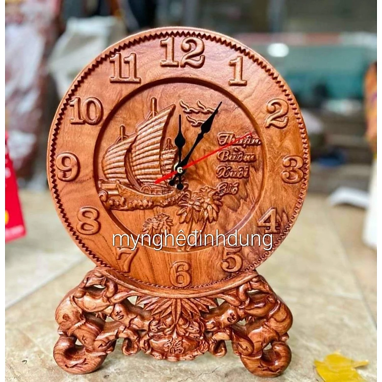 Đĩa đồng hồ thuận buồm xuôi gió trang trí phòng khách bằng gỗ hương đá kt mặt tròn 27×3×37cm