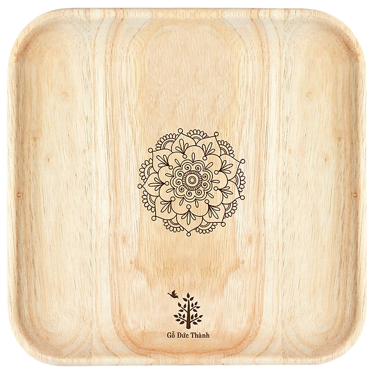 - Đĩa gỗ vuông Gỗ Đức Thành được thiết kế với kiểu dáng hiện đại, bên trong lõm, có in họa tiết hình bông hoa tinh tế.