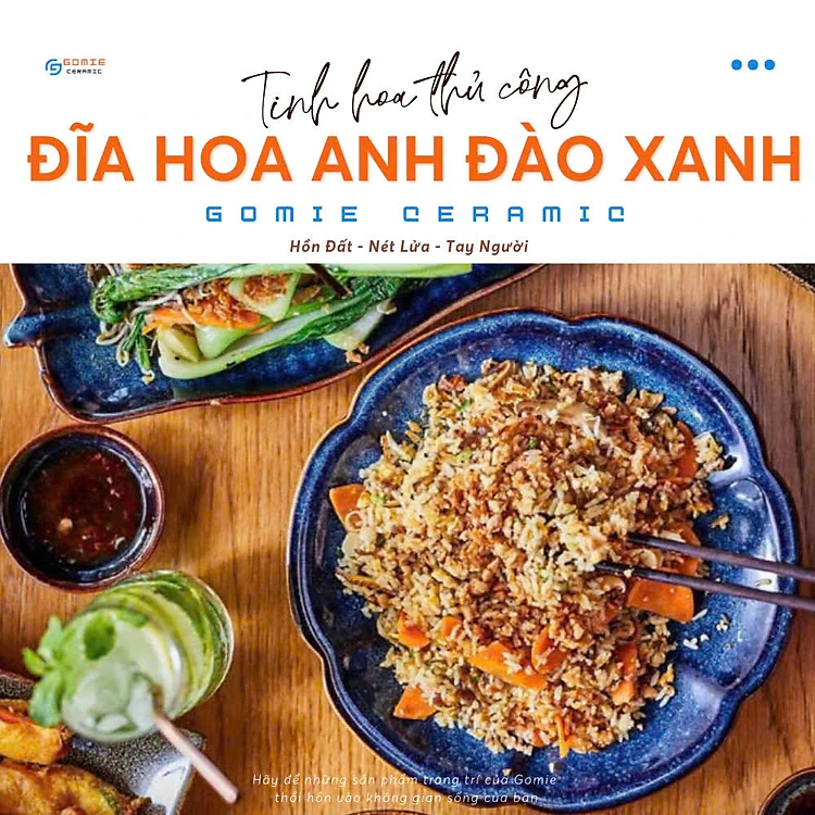 Đĩa hoa anh đào men xanh hỏa biến Gomie Ceramic Bát Tràng, men hỏa biến cao cấp,an toàn sức khỏe