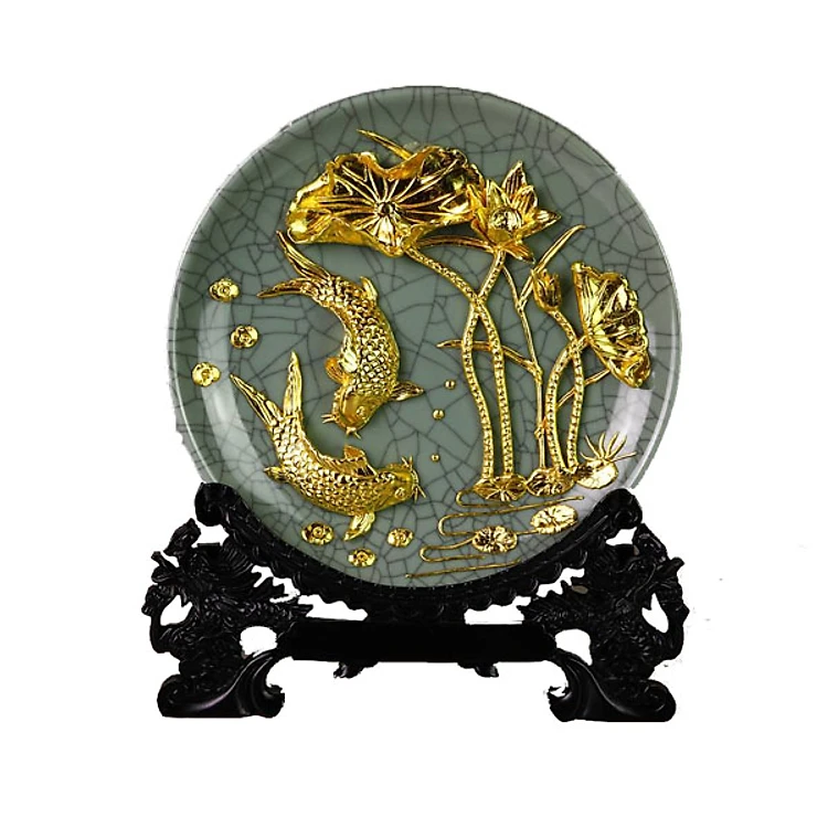Đĩa Ngọc Cá Chép Hoa Sen Dát Vàng