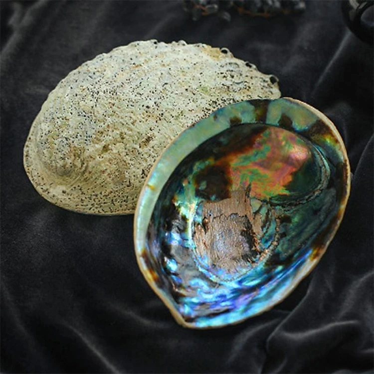 Đĩa ốc xà cừ Vỏ sò/bào ngư đốt sage/ xô thơm - Chân đế đỡ gỗ xoài ( Abalone Shell with Natural Wooden Cobra Stand)