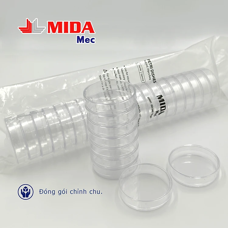 Đĩa Petri nhựa MidaMec 6015 đã tiệt trùng đóng gói 20 cái/bao