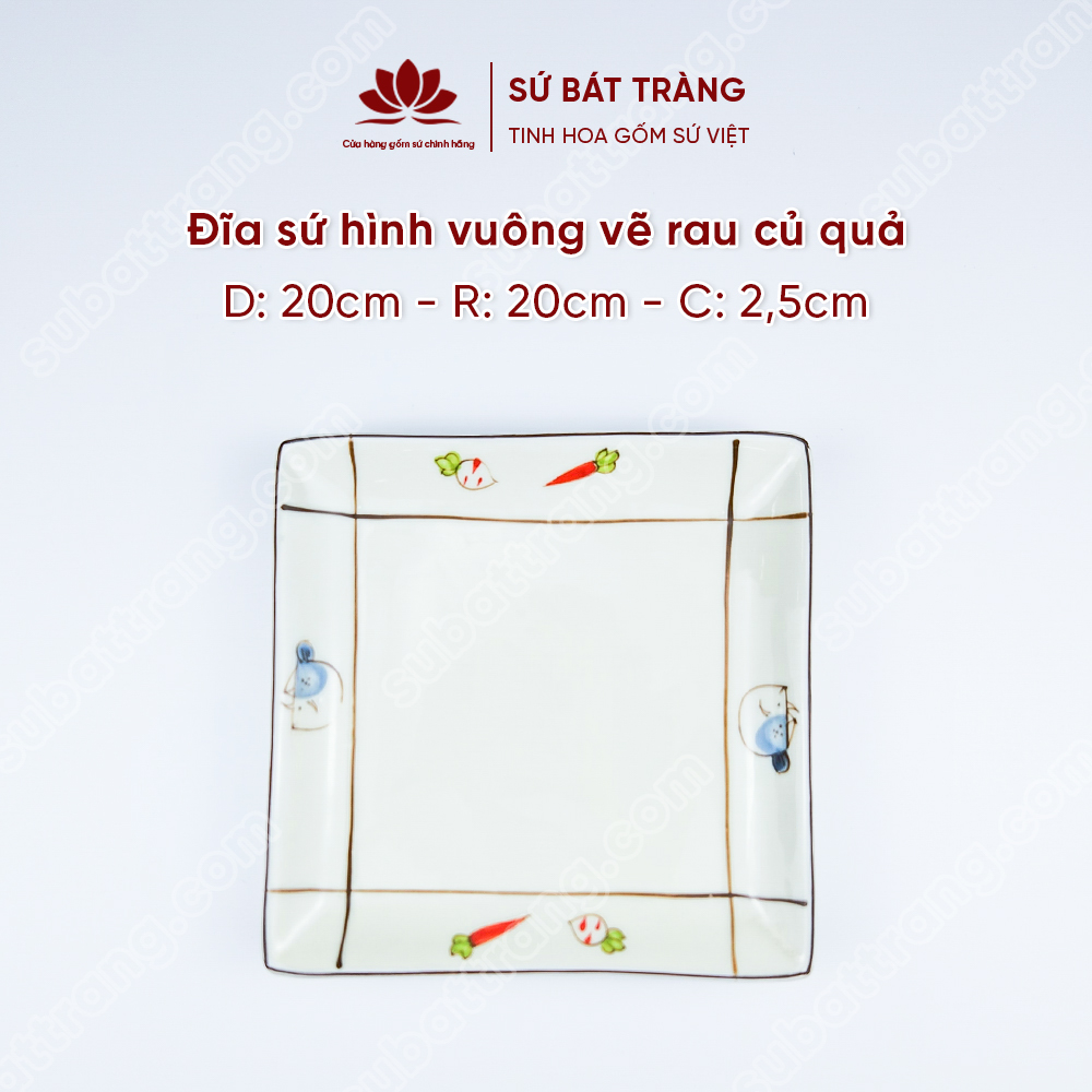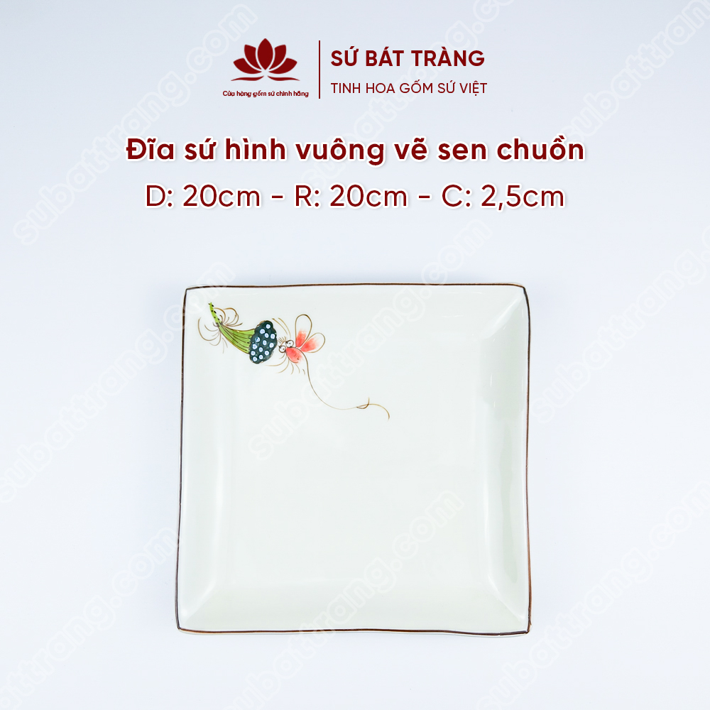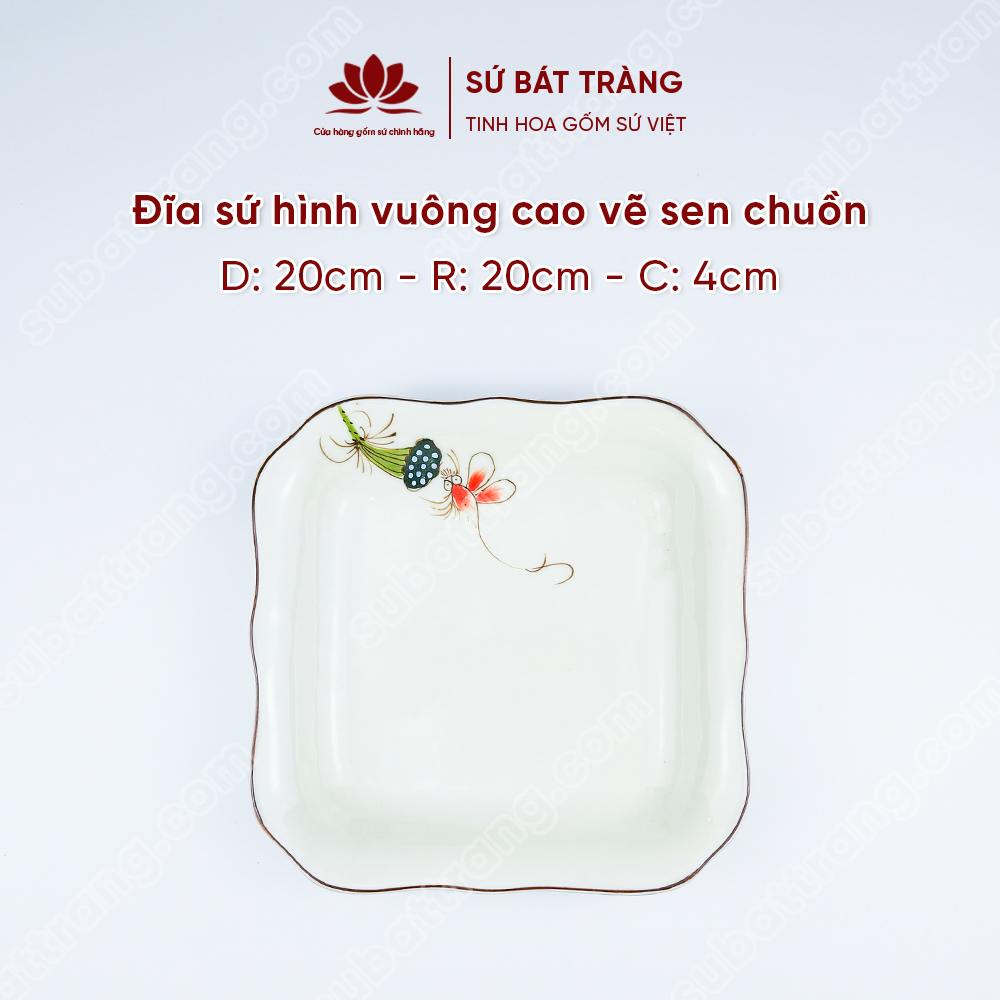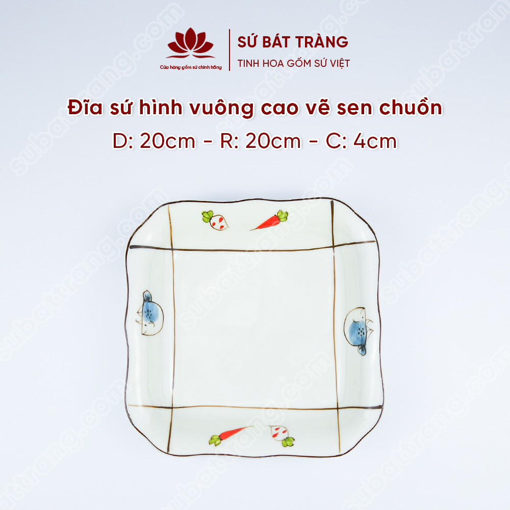 Đĩa sứ hình vuông nhiều họa tiết lựa chọn cao cấp Bát tràng