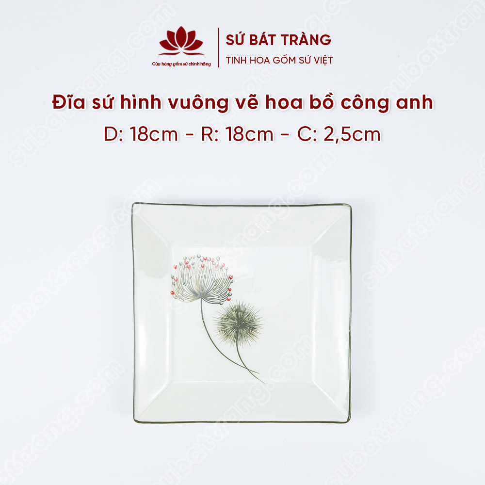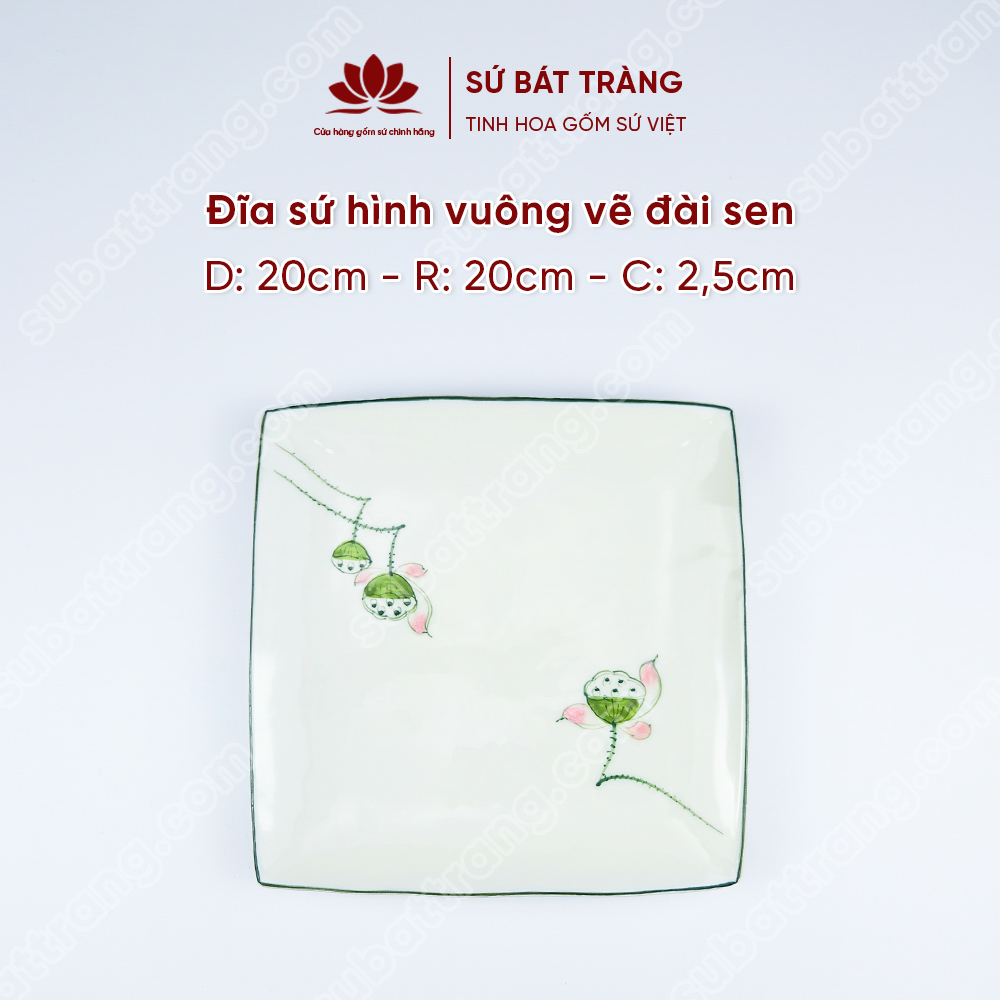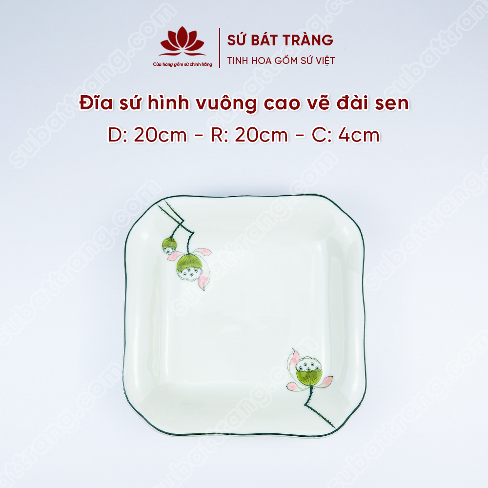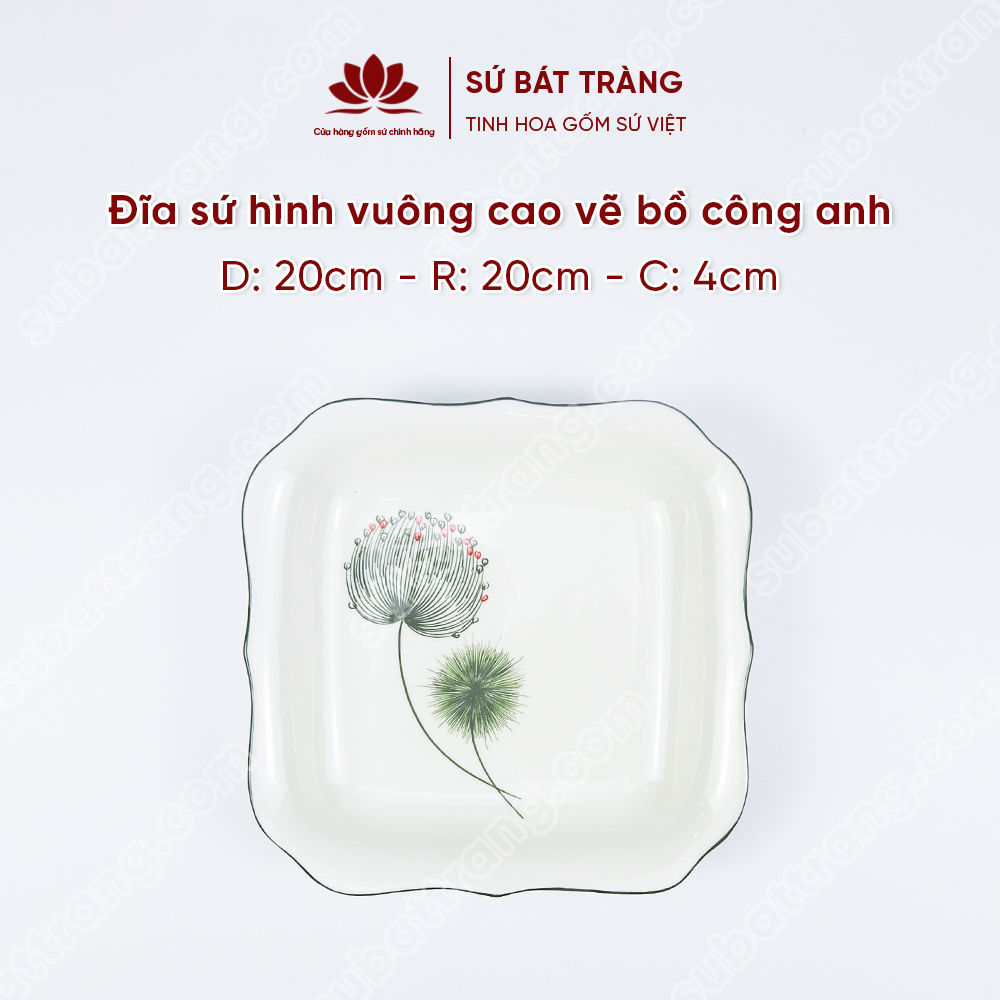 Đĩa sứ hình vuông nhiều họa tiết lựa chọn cao cấp Bát tràng