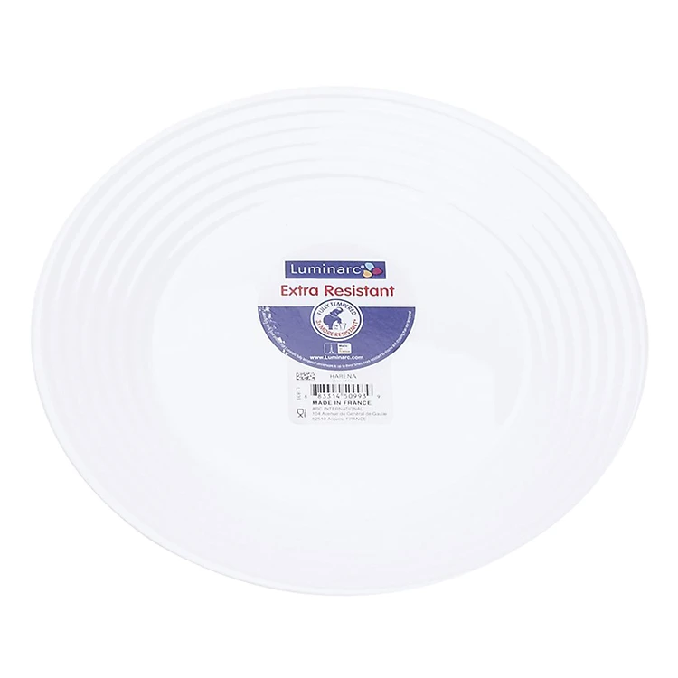 - Đĩa Thuỷ Tinh Luminarc Harena L3263 (27cm) mang vẻ đẹp sang trọng, tinh tế với gam màu trắng thanh lịch cùng với thiết kế gợn sóng cách điệu đem lại sự nổi bật trong bộ đồ dùng bàn ăn hàng ngày của các gia đình trẻ hiện đại.