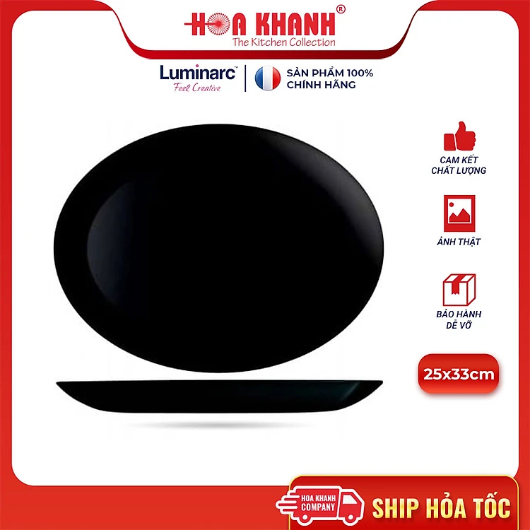 Đĩa Thủy Tinh Oval Luminarc Diwali Đen 25x33CM - bộ 6 đĩa - P0866