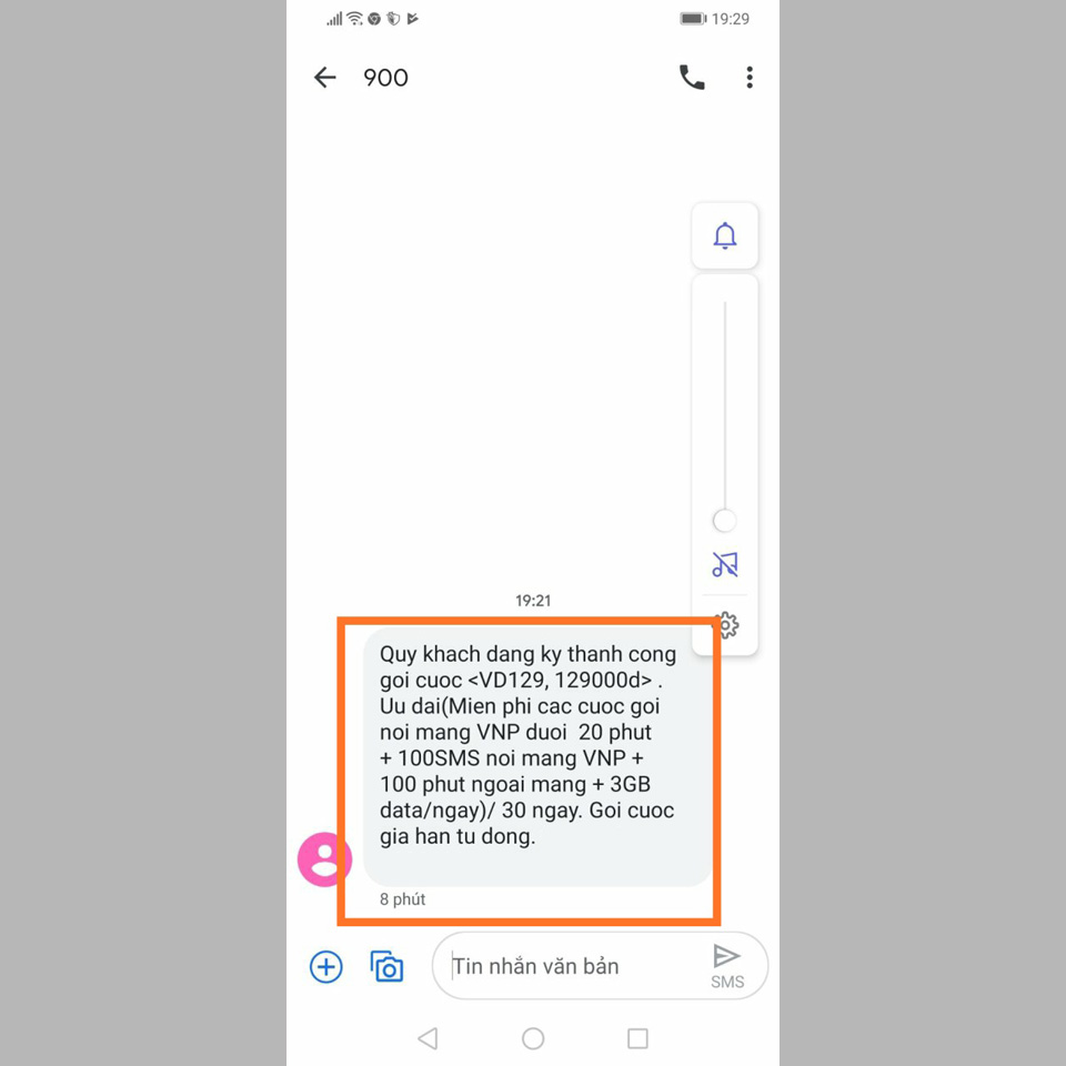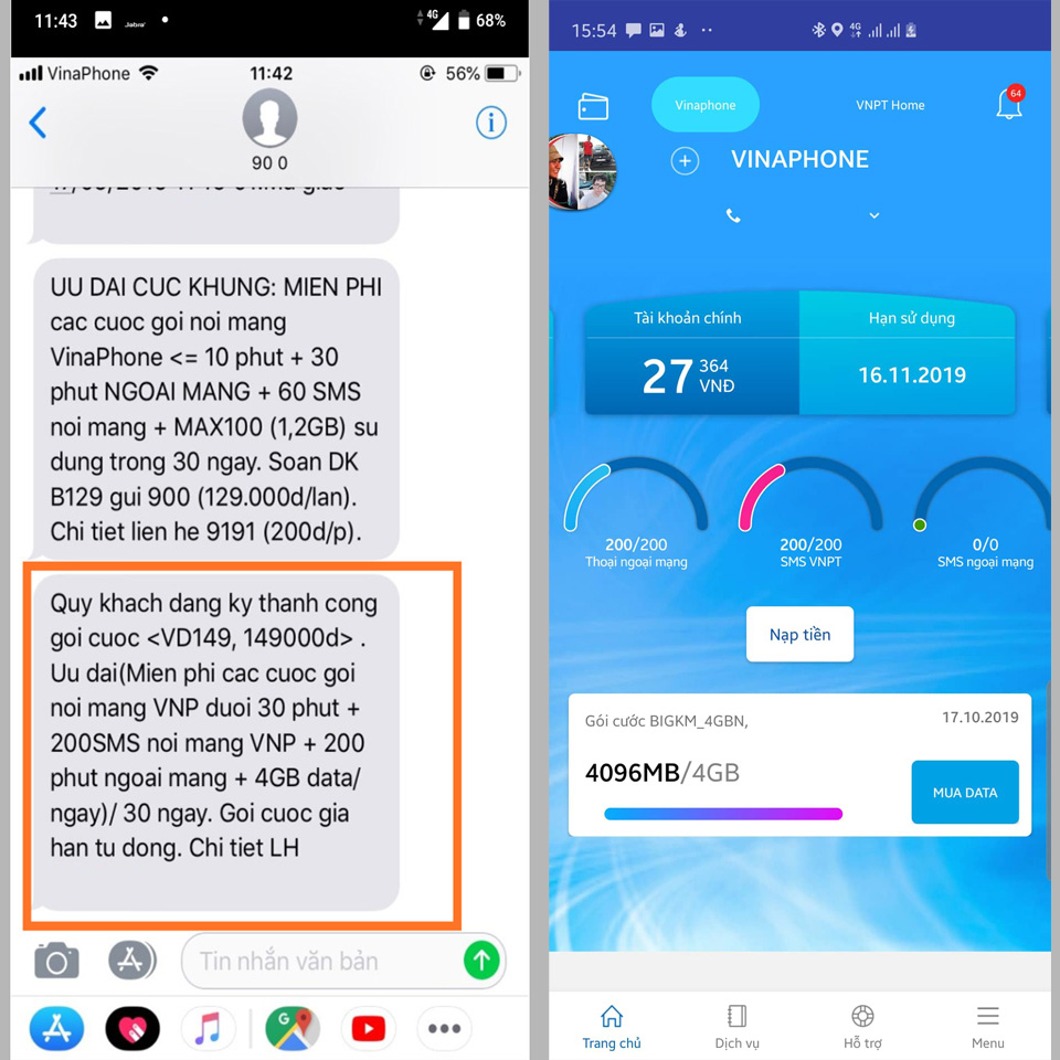 HÌNH ẢNH GÓI CƯỚC ĐƯỢC GÁN THÀNH CÔNG LÊN SIM