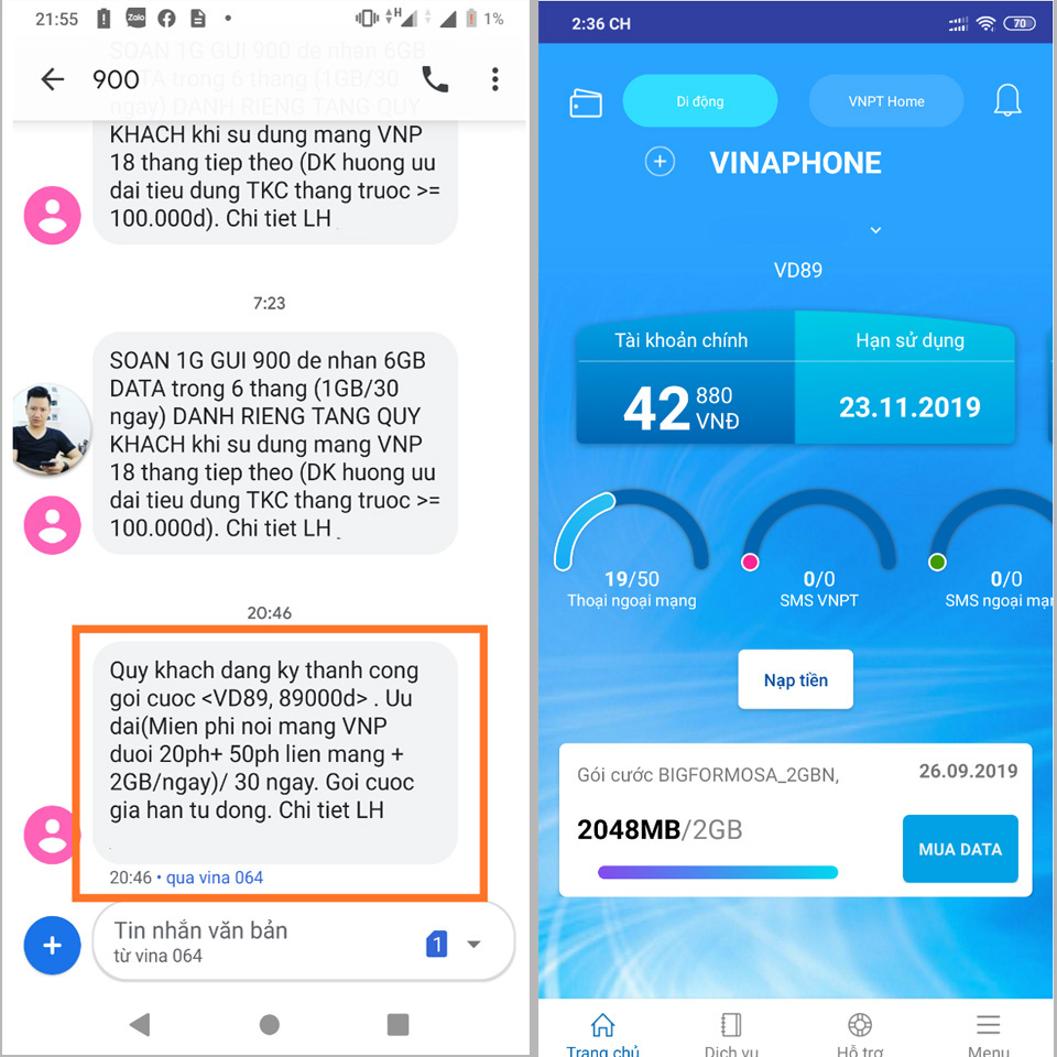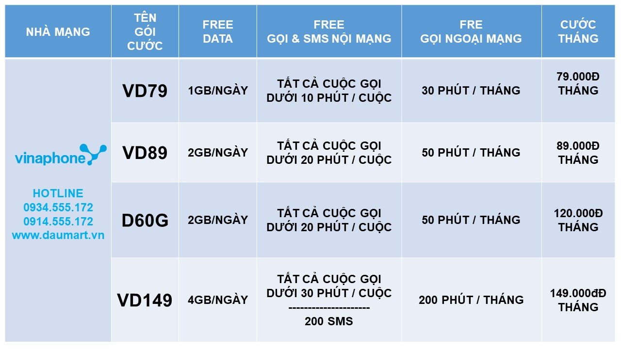 1. GÓI CƯỚC VD89. Cước 89.000đ/ tháng