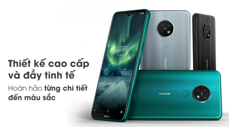Nokia 7.2 được làm bằng khung polycarbonate kẹp giữa các tấm kính cường lực Gorilla Glass với hiệu ứng gradient khuếch tán ánh sáng trông rất cao cấp.