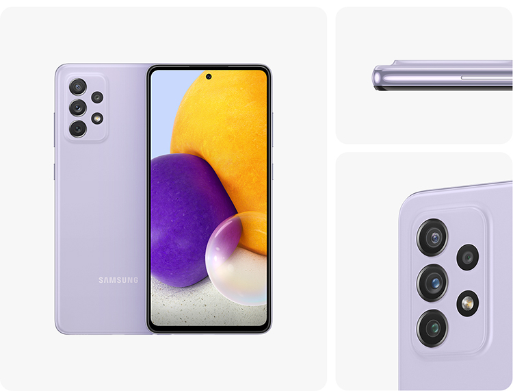 Chiêm ngưỡng những đường cong mềm mại trên thiết kế liền mạch bóng bẩy của Galaxy A72. Vỏ camera tối giản hài hoà cùng lớp nền nhám của mặt sau, tạo nên vẻ ngoài nguyên khối hiện đại.