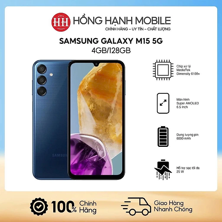 Điện Thoại Samsung Galaxy M15 5G 4GB/128GB - Hàng Chính Hãng
