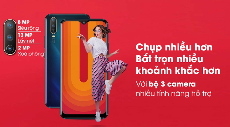 Máy được trang bị bộ ba camera trí tuệ nhân tạo bao gồm: 1 camera chính 13 MP, 1 camera góc rộng 8 MP và 1 camera đo chiều sâu 2 MP cùng đèn flash led.