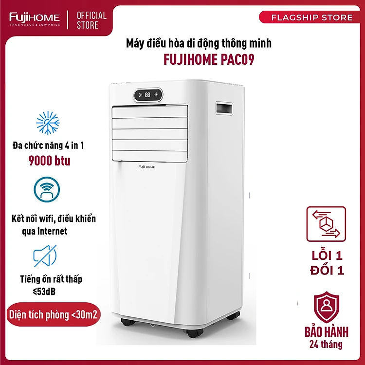 - Máy điều hòa di động PAC09 sử dụng máy nén liên doanh TOSHIBA GMCC, đi kèm dàn tản nhiệt 100% đồng nguyên chất cho hiệu năng hoạt động siêu bền bỉ và hiệu suất làm lạnh cao trong mọi điều kiện thời tiết đặc thù của khí hậu Việt Nam.