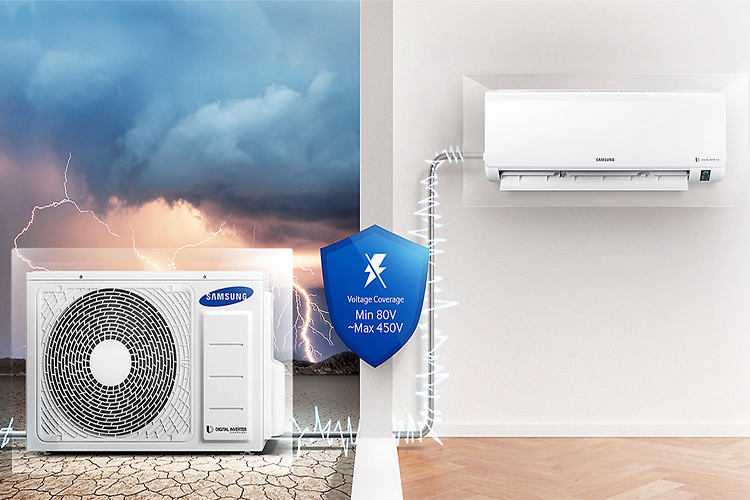Điều hòa Samsung còn được trang bị bộ ba bảo vệ tăng cường, giữ cho máy hoạt động ổn định, bền bỉ lên đến 132V trong điều kiện môi trường khắc nghiệt nhất, ngăn ngừa máy hoạt động quá tải, không cần đến ổn áp gắn rời và cấu tạo vỏ máy chống ăn mòn, chịu được nhiệt độ cao, giúp máy lạnh khỏi gỉ sét.