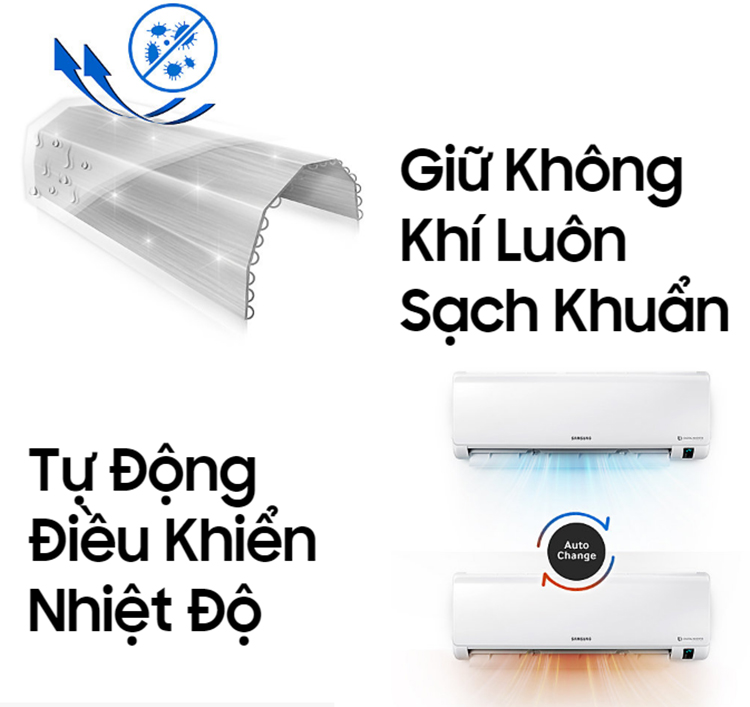 Điều hòa Inverter sử dụng bộ lọc 3-Care Filter, giúp không khí luôn tươi mát và bên trong máy sạch sẽ. Cùng với tính năng giữ lại bụi bẩn trên màn lọc lưới dày, vỏ ngoài độc đáo có thể loại bỏ đến 99% một số loại virus có hại, vi khuẩn và tác nhân kích ứng trong không khí. Đặc biệt, máy còn sở hữu chế độ vệ sinh tự động cho phép máy tự vệ sinh lồng quạt bên trong dàn lạnh, ngăn ngừa bụi bẩn và vi khuẩn phát triển bên trong dàn lạnh mà bạn không cần phải tốn công lau chùi.