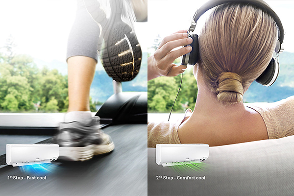 Nổi bật hơn, sản phẩm có chế độ làm lạnh 2 bước, đầu tiên máy sẽ làm lạnh tức thì với chế độ làm lạnh nhanh để giúp bạn nhanh chóng cảm thấy thoải mái. Ngay khi đạt nhiệt độ yêu cầu, máy sẽ tự động chuyển qua chế độ làm lạnh dễ chịu để duy trì nhiệt độ này để bạn không cảm thấy khó chịu vì quá lạnh, lại không cần phải thay đổi thiết lập liên tục.