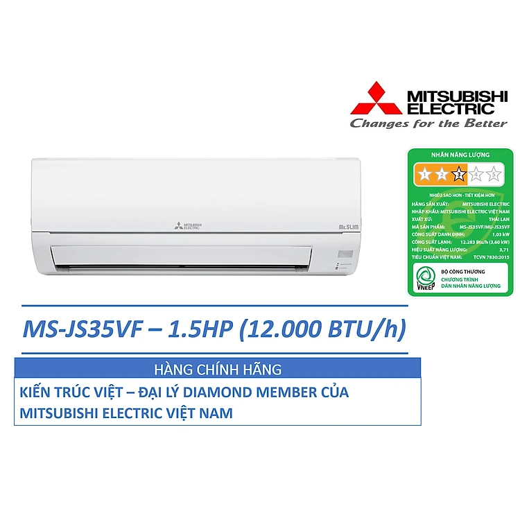 ĐIỀU HÒA KHÔNG KHÍ (MÁY LẠNH) MITSUBISHI ELECTRIC MS-JS35VF - 1.5 HP(NGỰA) (12,000 BTU/h) - NON-INVERTER - HÀNG CHÍNH HÃNG