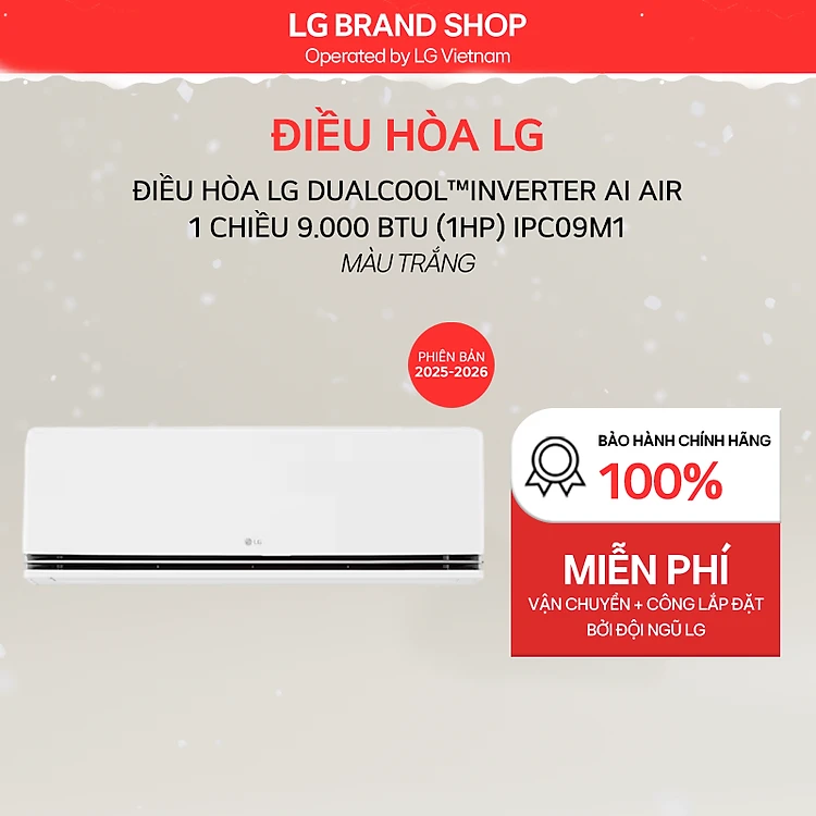 [Chỉ giao Miền Bắc/Nam] Điều hòa LG DUALCOOL Inverter AI Air 1 chiều 1HP IPC09M1 - Hàng Chính Hãng