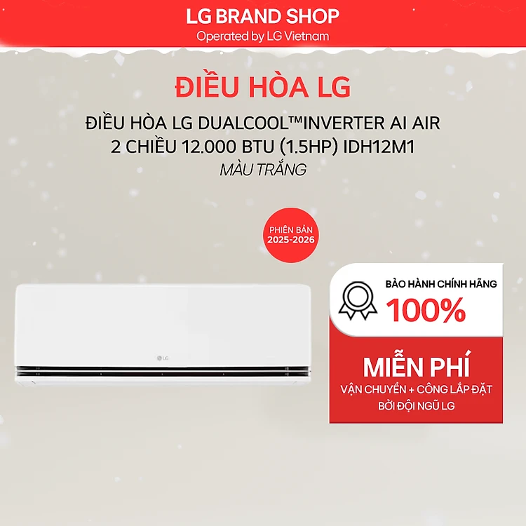 [Chỉ giao Miền Bắc/Nam] Điều hòa LG DUALCOOLInverter AI Air 2 chiều 1.5HP IDH12M1 - Hàng Chính Hãng