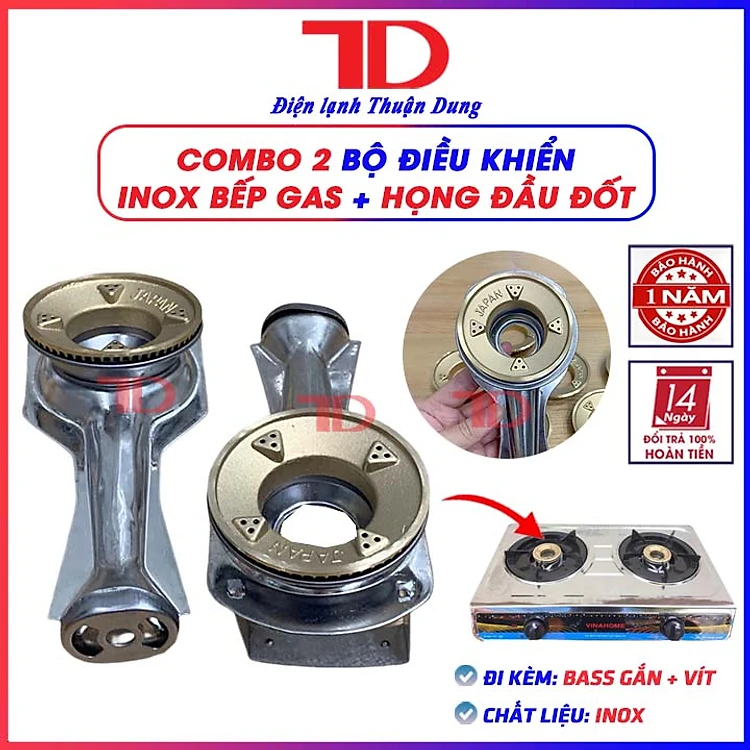 Điếu inox bếp gas + Họng Đầu Đốt chia lửa Sen đồng 78 JAPAN - ( Kèm Bass gắn + Vít) - Điện Lạnh Thuận Dung