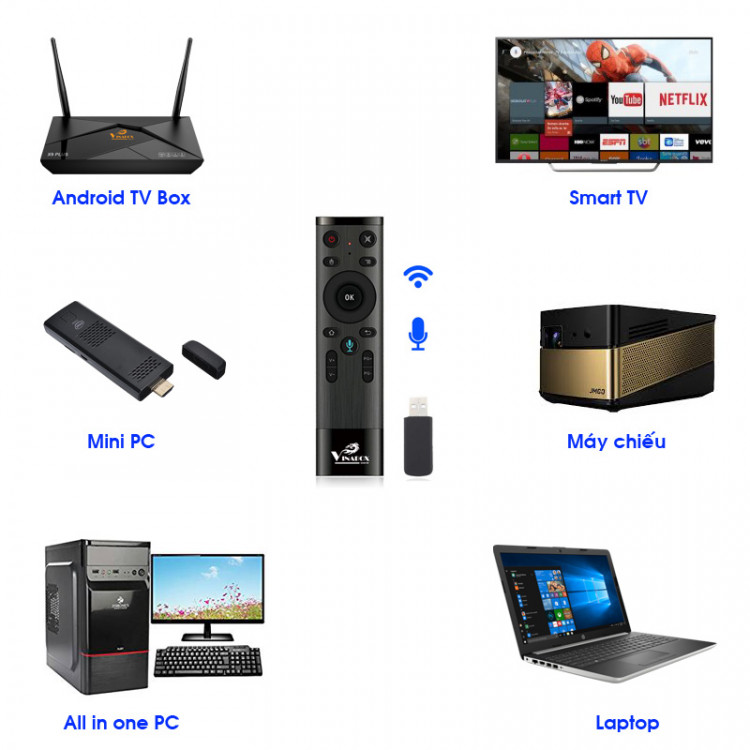Điều khiển voice KM650V tương thích với rất nhiều thiết bị giải trí, là một lựa chọn tuyệt vời nếu bạn đang cần tìm kiếm một chiếc điều khiển thông minh