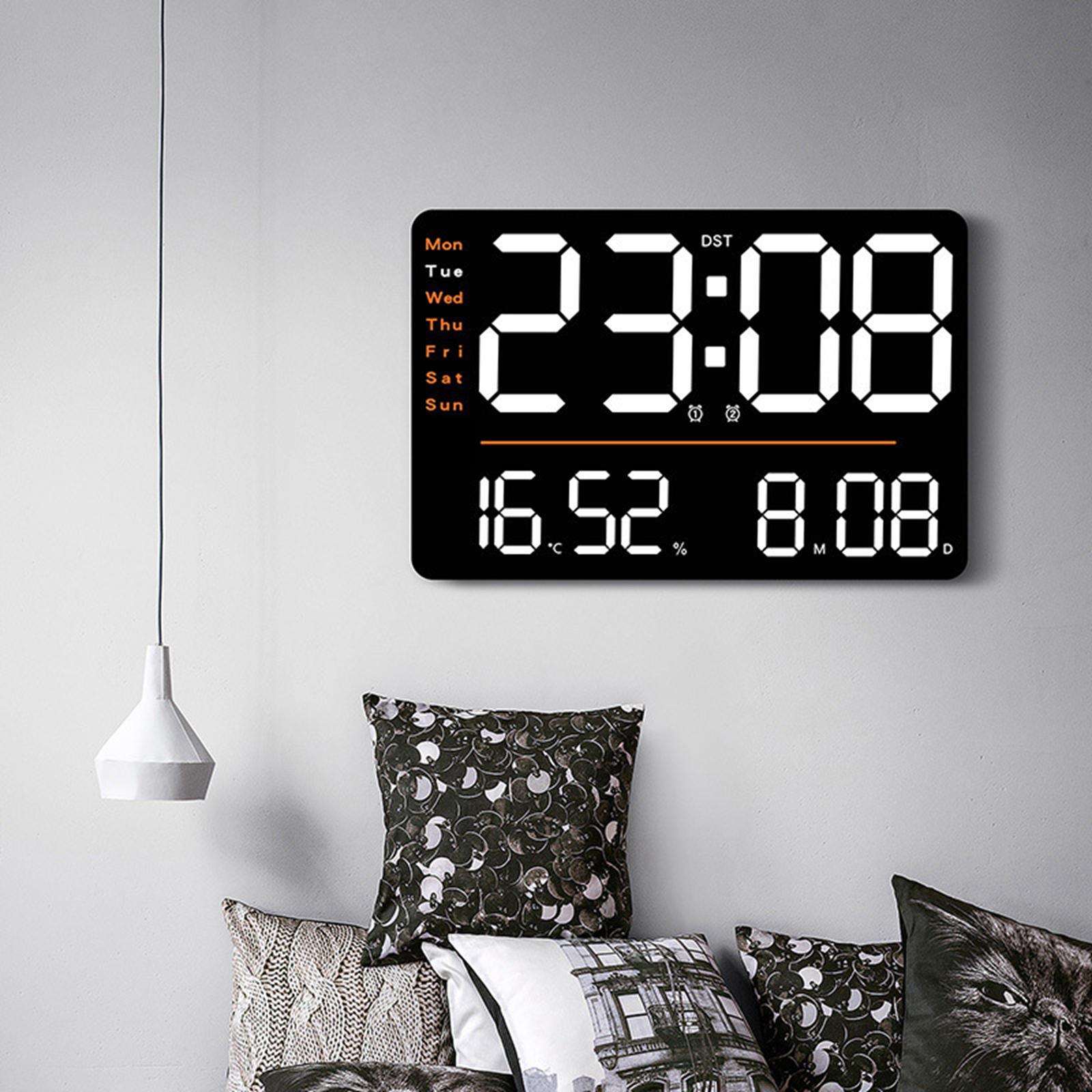 【Multifunction】: Digital Wall Clock Large Display, temperature, humidity, time, day of the week, date displayed on the same screen, as well as days countdown, daylight saving time, alarm function, memory mode, countdown/countdown function. 12/24 format switching. Can be operated remotely