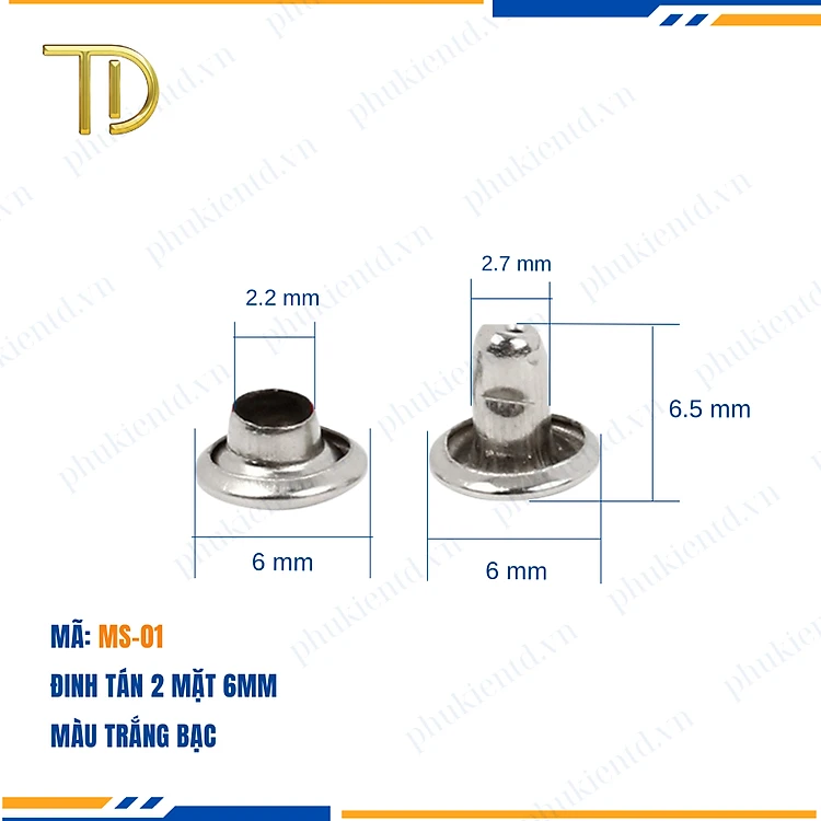 1 đinh tán 2 mặt, Trắng