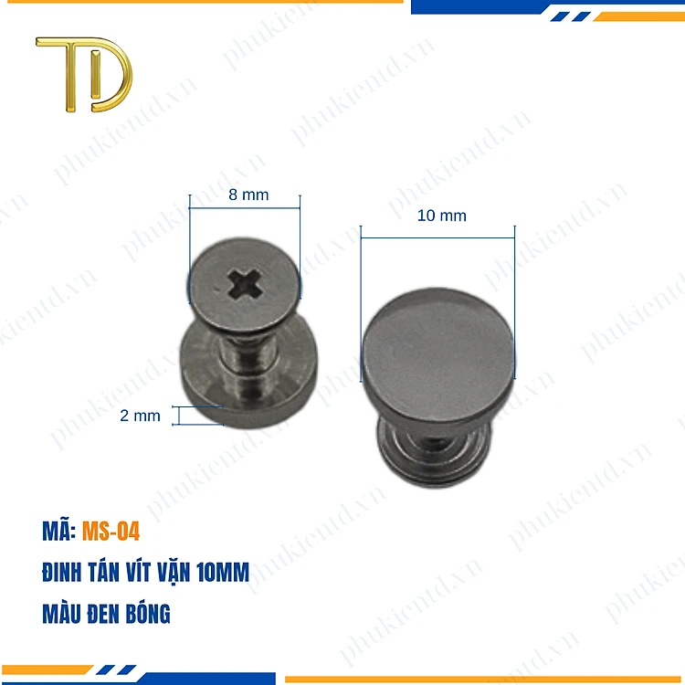 Đinh tán vít vặn, đinh tán vặn ren túi xách 10mm công nghệ mạ điện Electroplating độ bền 5-8 năm
