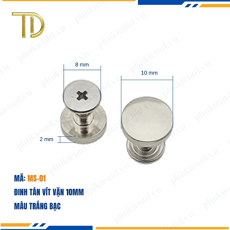 Đinh tán vít vặn, đinh tán vặn ren túi xách 10mm công nghệ mạ điện Electroplating độ bền 5-8 năm
