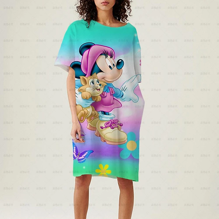 Disney Chuột Mickey Minnie Nữ Áo Thun Đầm Maxi Nữ Đi Biển Mùa Hè Đảng Vintage Rời Áo Thun Nữ Tay Ngắn Áo