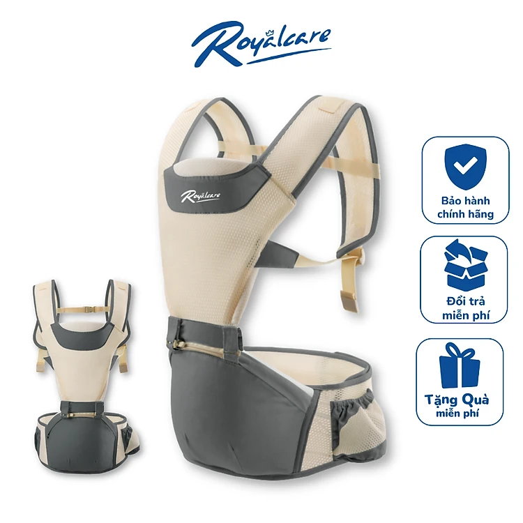 Địu ngồi trẻ em 4 tư thế lưới siêu thoáng Air mesh siêu thoáng Royalcare - 906 - cho bé 3 tháng tới 36 tháng - tặng khăn yếm cho bé