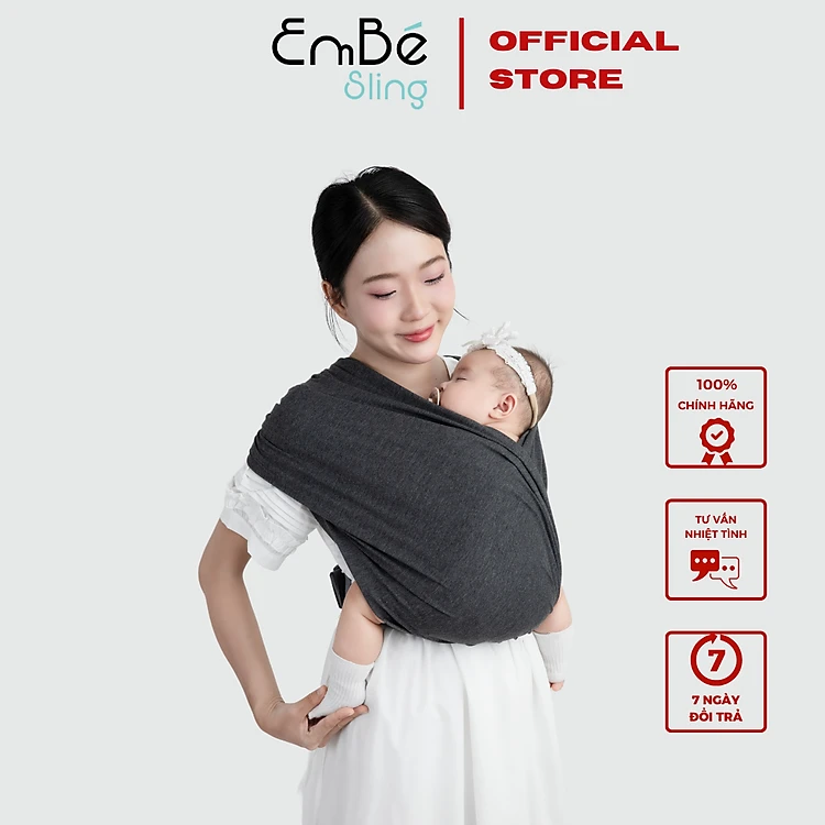 [THIẾT KẾ MỚI] Địu Vải EmBé Sling Cao Cấp Màu Charcoal Cho Bé Từ 0 Đến 24 Tháng Tuổi