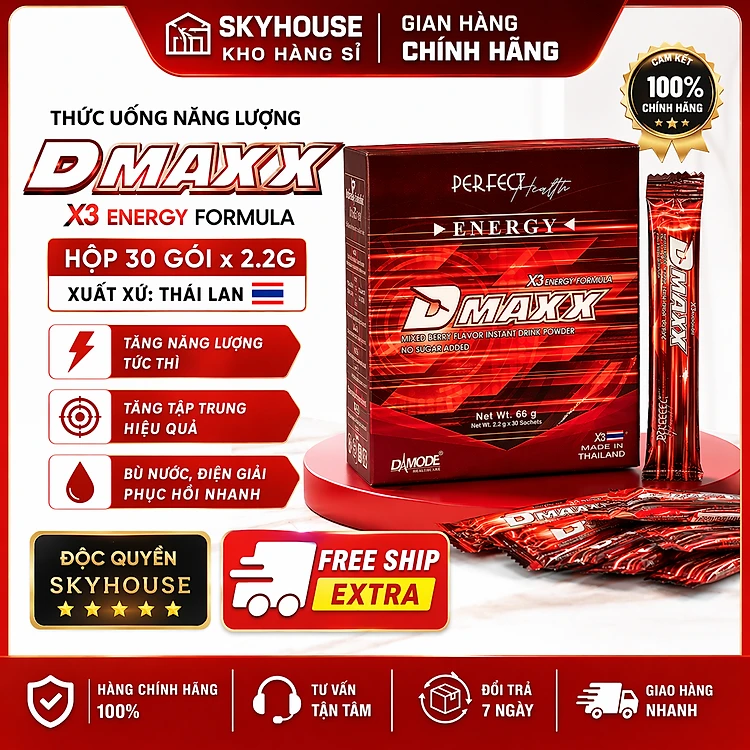 DMAXX thức uống bổ sung vitamin năng lượng không đường DAMODE 1 gói dùng thử màu đỏ