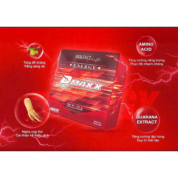 DMAXX thức uống bổ sung vitamin năng lượng không đường DAMODE 31 gói màu đỏ mỗi gói 2,2gr