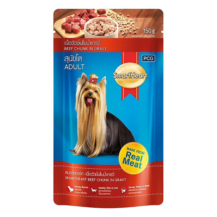 Đồ Ăn Cho Chó Vị Bò Miếng Nấu Xốt SmartHeart (Gói 130g)
