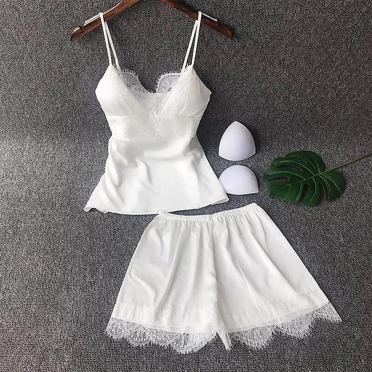 đồ bộ áo hai dây kèm quần đùi phối ren