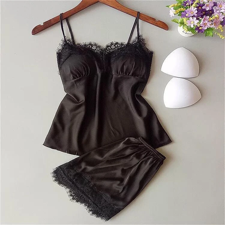 đồ bộ áo hai dây kèm quần đùi phối ren