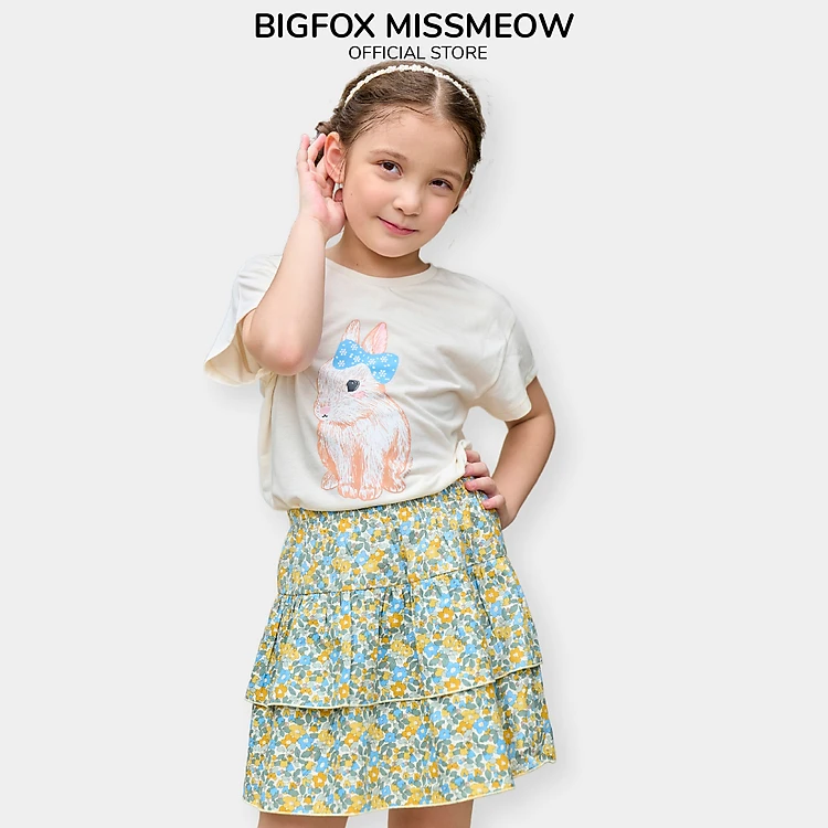 Đồ bộ bé gái Bigfox Miss Meow size đại mặc hè áo ngắn tay phối chân váy kiểu Hàn Quốc vải cotton cỡ 3-11 tuổi 25kg 30kg