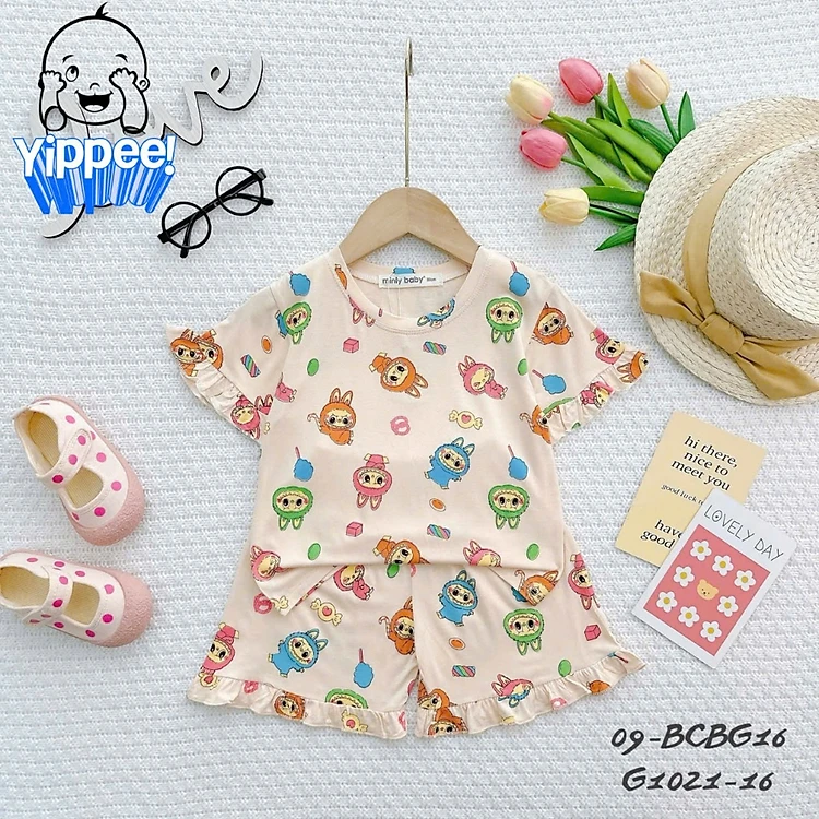 Đồ bộ bé gái, bộ cộc tay mùa hè cho bé gái hình LABUBU size 5-28kg chất cotton mềm mịn mát